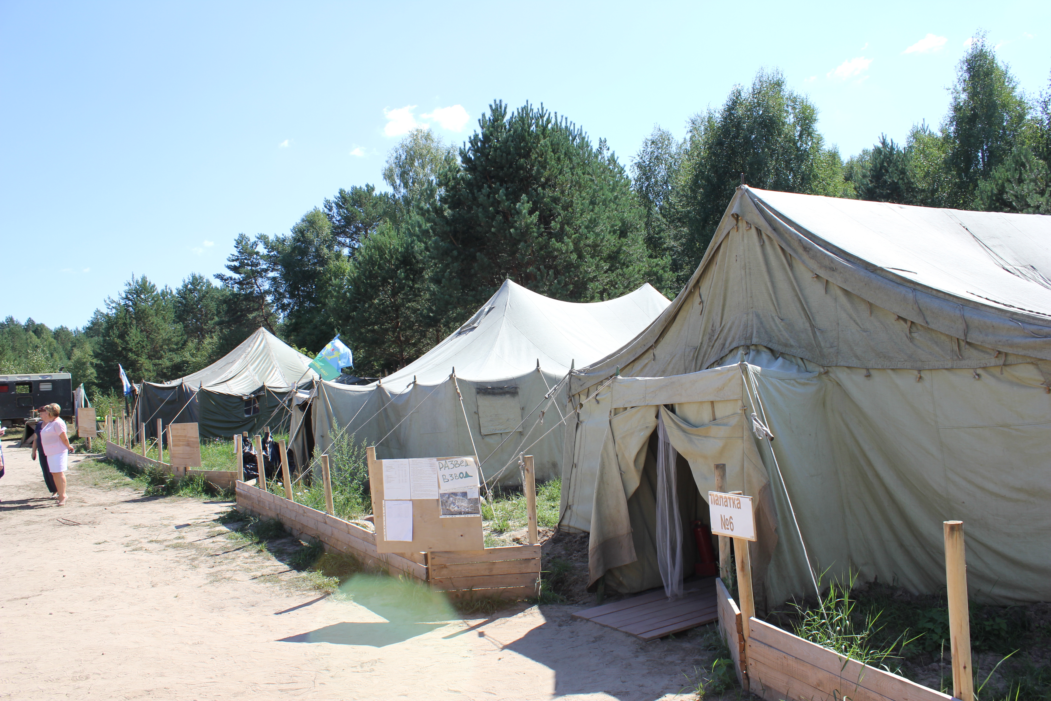 За два месяца, начиная с апреля, удалось сделать немало. Полтора гектара обнесённой забором территории грамотно разделены на отдельные зоны. Жилая – с основательно окопанными вместимыми армейскими палатками, выстланными дощатыми помостами (что спасает при дождливой погоде). Здесь же нельзя не сказать о капитально построенном санитарно-гигиеническом модуле с такими благами цивилизации, как душ с горячей водой (и даже современный санузел). ЖБО из герметично закопанного септика утилизируются по договору один раз в три дня. Столы для приёма пищи укрыты от палящего солнца куполами-навесами из отслуживших своё парашютов (даже в таких мелочах чувствуется причастность организаторов к братству ВДВ). Вода для питья бутилированная, как того требует Роспотребнадзор, питание - на подвозе (сотрудничают со школьными столовыми, рестораном и пр.). Чуть в стороне плац для строевой подготовки, недалеко - спортивная площадка и, конечно, главное, за чем едут сюда ребята, - зона военной подготовки со всеми необходимыми элементами, начиная с верёвочного городка и тарзанки, заканчивая подвесными системами для приобщения к военно-воздушным тренировкам.