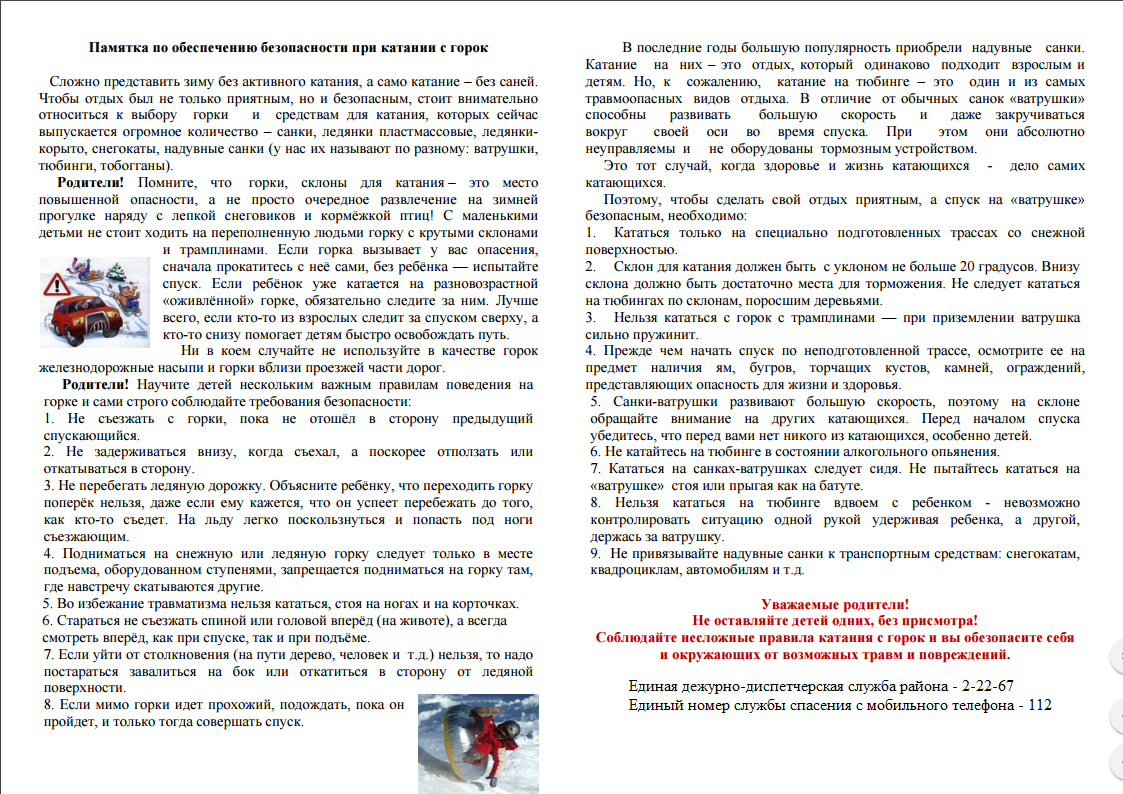 ПАМЯТКА КАТАНИЯ С ГОРОК