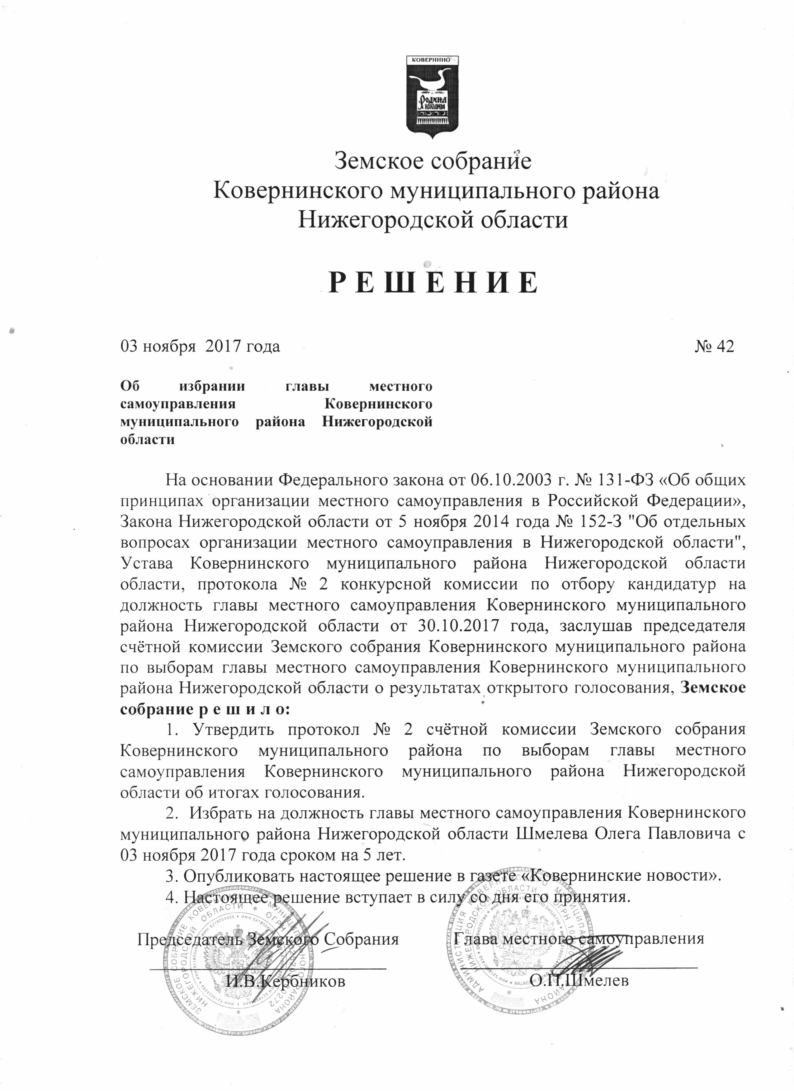 решение об избрании главы МСУ