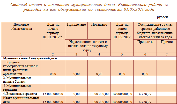 5.2. Сводный отчет о состоянии муниципального долга Ковернинского муниципального округа и расходах на его обслуживание