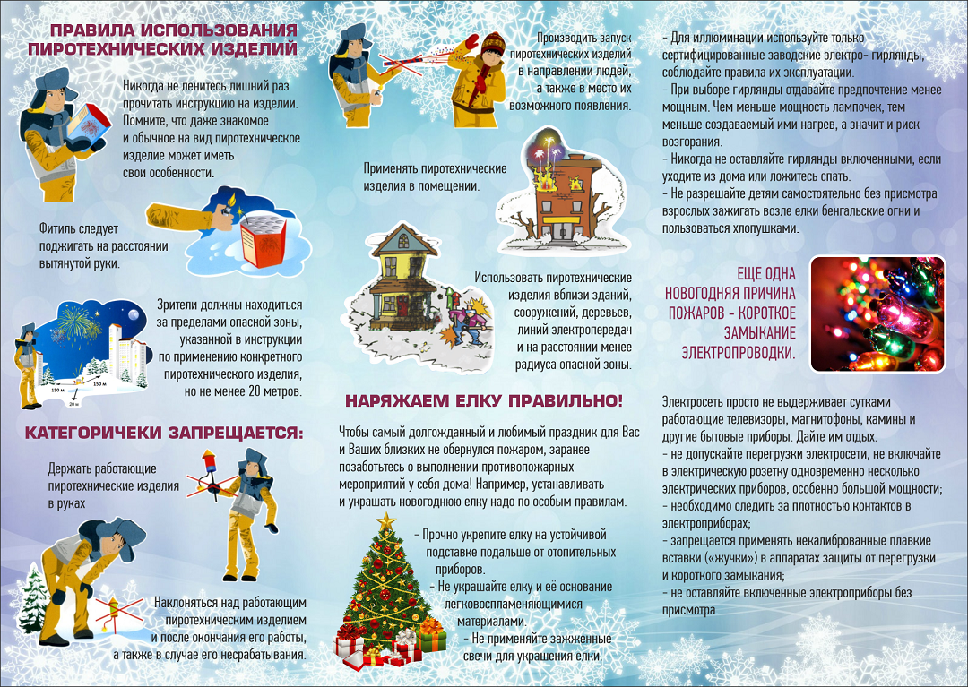 В период проведения новогодних и рождественских праздников увеличивается вероятность возникновения пожаров по причине нарушения правил пожарной безопасности при хранении и использовании пиротехнических изделий.