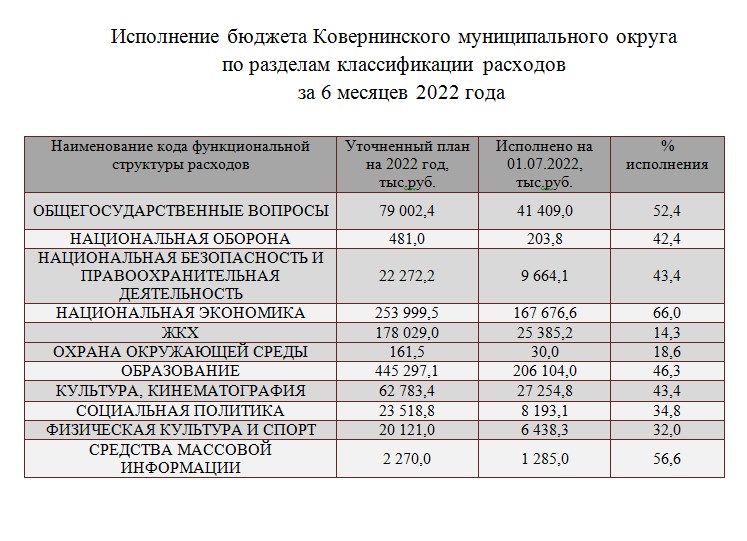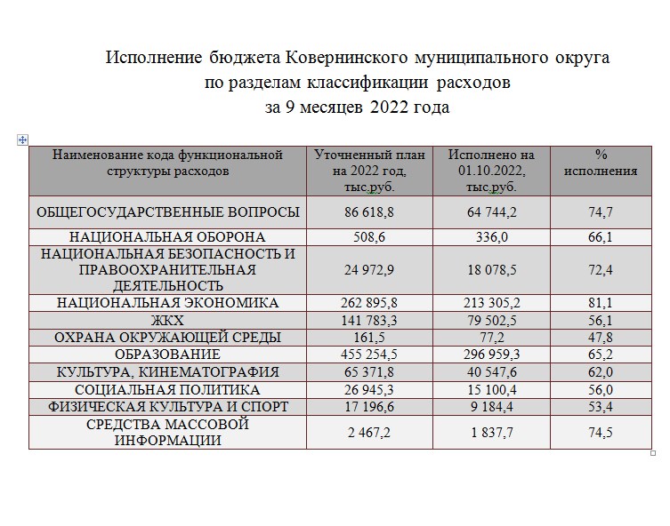 Исполнение бюджета по разделам классификации расходов бюджетов