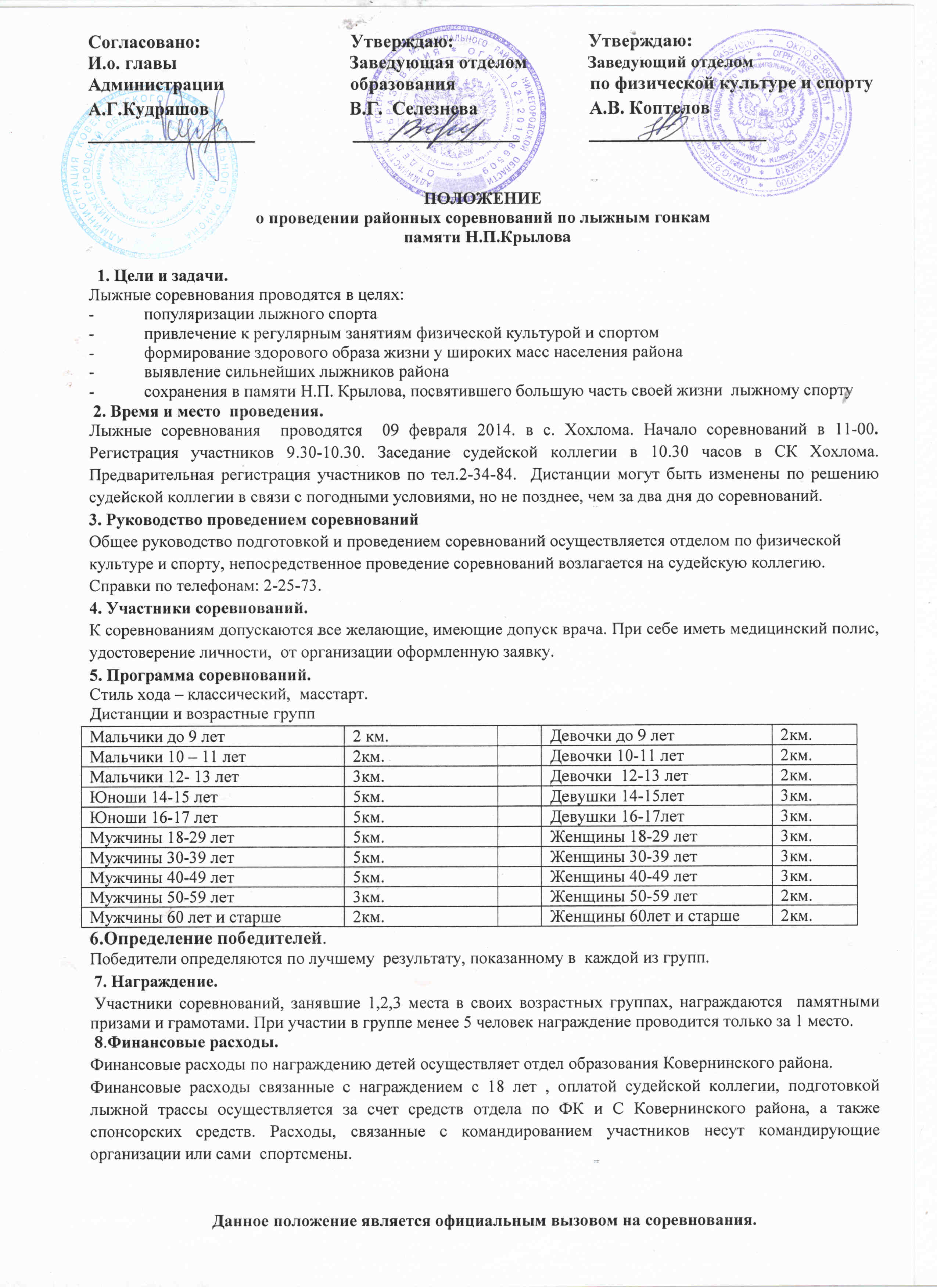 Положение по лыжным гонкам на призы памяти Н.П.Крылова