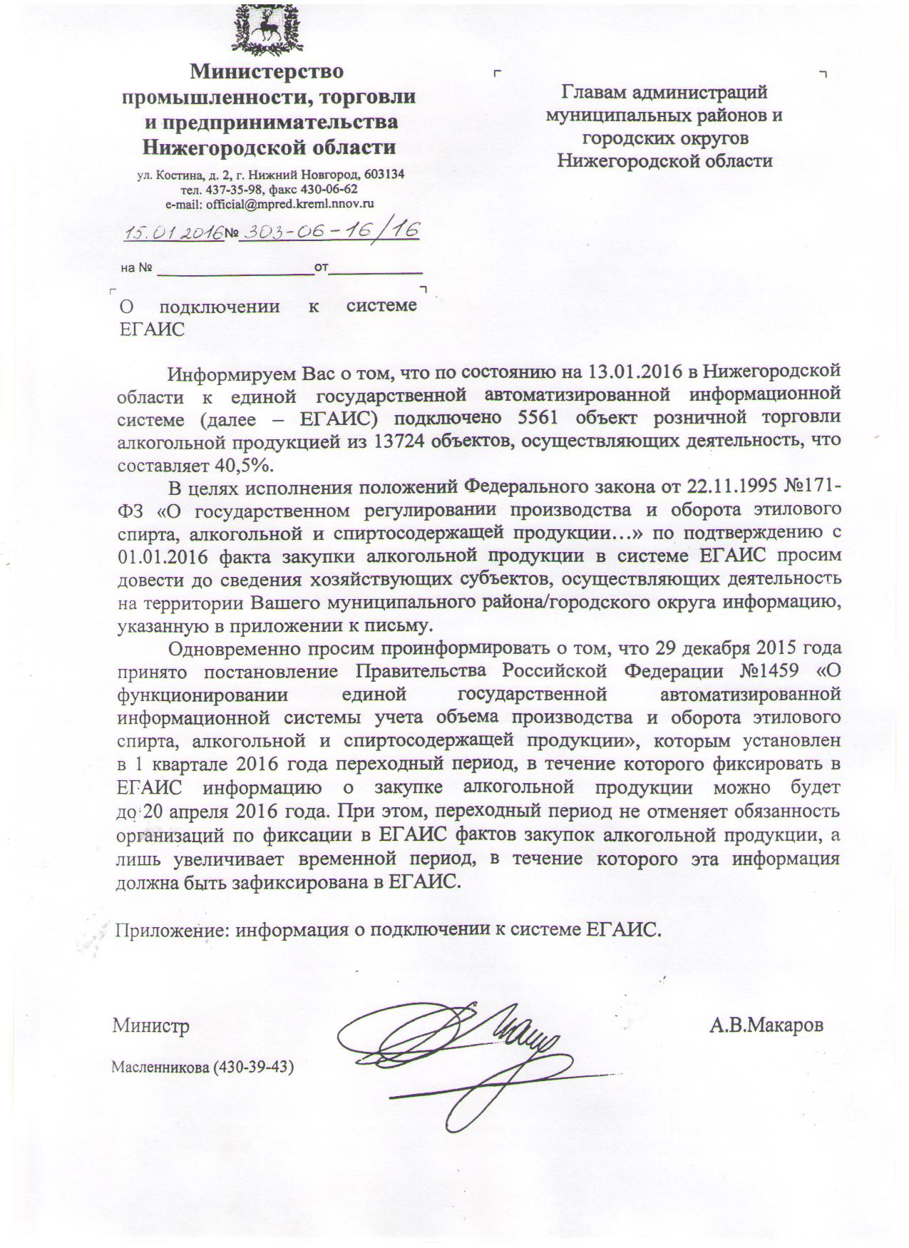 19.01.2016Информация о подключении к системе ЕГАИС организаций розничной торговли алкогольной продукции