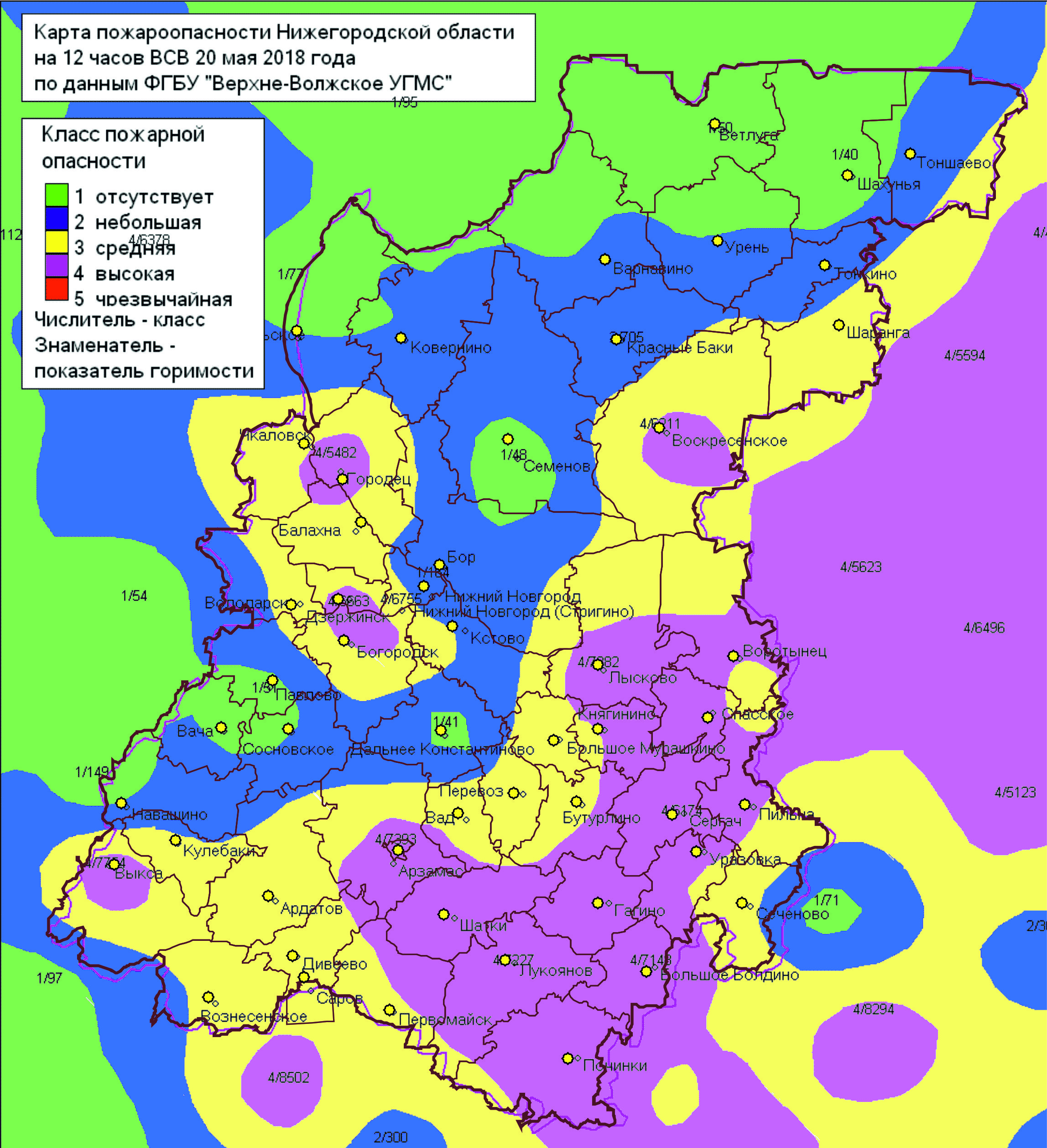 Частично 3-й класс пожароопасности лесов установился в 11 муниципальных образованиях: г.о. г. Бор, г.о. г. Кулебаки, г.о. Перевозский, г.о. Сокольский, Вознесенский, Володарский, Кстовский, Павловский, Сеченовский, Тоншаевский, Шарангский районы.