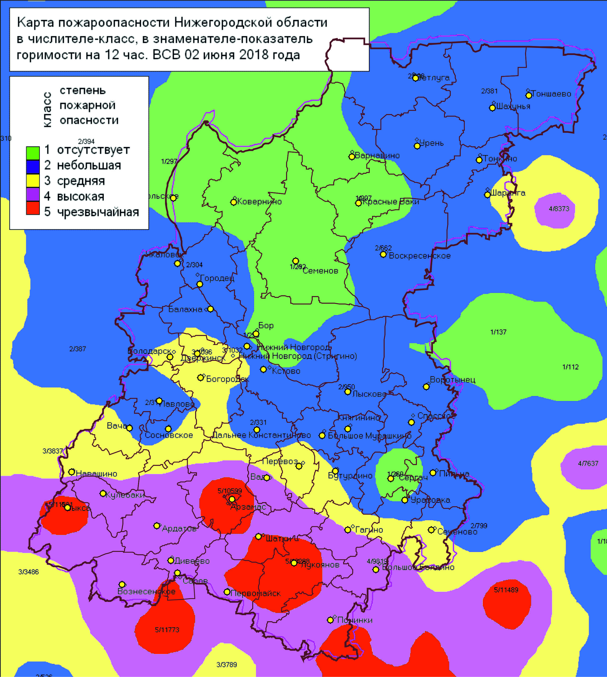 Частично 3-й класс пожароопасности лесов установился в 12 муниципальных образованиях: г.о. Навашинский, Балахнинский, Богородский, Большемурашкинский, Вачский, Володарский, Дальнеконстантиновский, Кстовский, Павловский, Сеченовский, Сосновский, Шарангский районы.