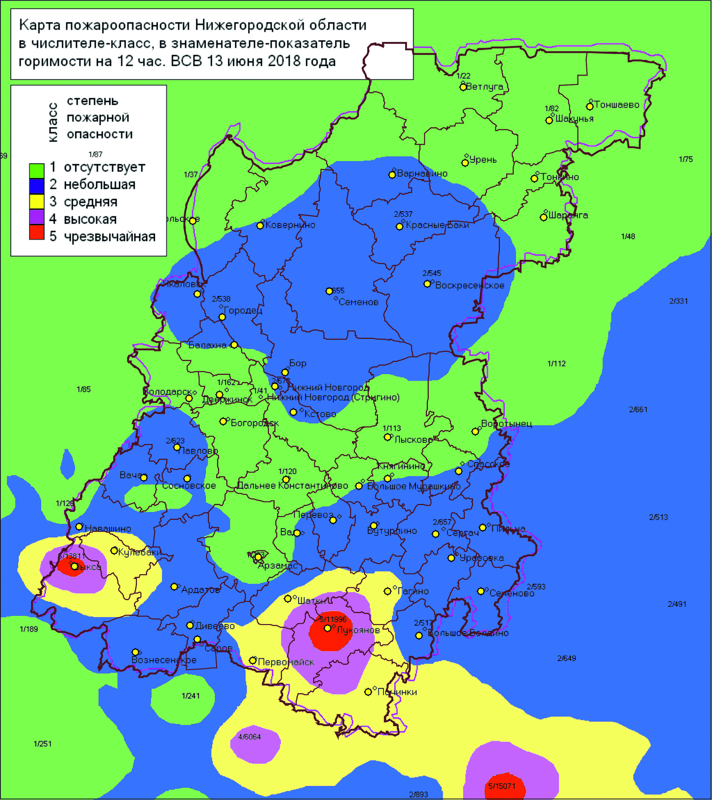 Полностью 1-й класс пожароопасности лесов установился в 8 муниципальных образованиях: г.о. г. Арзамас, г.о. г. Дзержинск, г.о. г. Шахунья, Богородский, Ветлужский, Володарский, Дальнеконстантиновский, Тоншаевский районы.