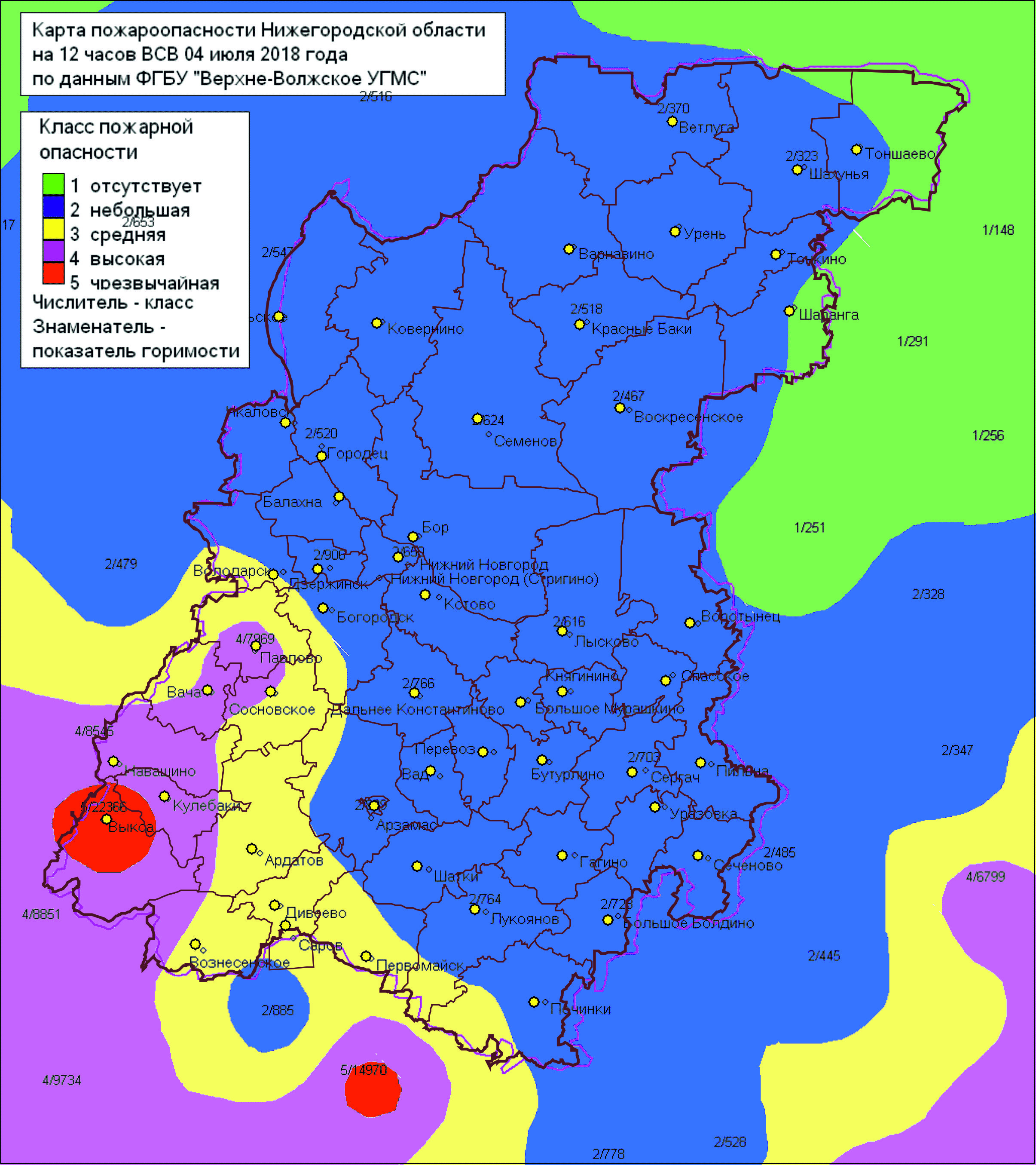 Полностью 2-й класс пожароопасности лесов установился в 32 муниципальных образованиях: г.о. г. Арзамас, г.о. г. Бор, г.о. г. Дзержинск, г.о. г. Нижний Новгород, г.о. Перевозский, г.о. Семеновский, г.о. Сокольский, г.о. г. Чкаловск, Балахнинский, Большеболдинский, Большемурашкинский, Бутурлинский, Вадский, Варнавинский, Ветлужский, Воротынский, Воскресенский, Гагинский, Городецкий, Княгининский, Ковернинский, Краснобаковский, Краснооктябрьский, Кстовский, Лысковский, Пильнинский, Сергачский, Сеченовский, Спасский, Тонкинский, Уренский, Шатковский районы.