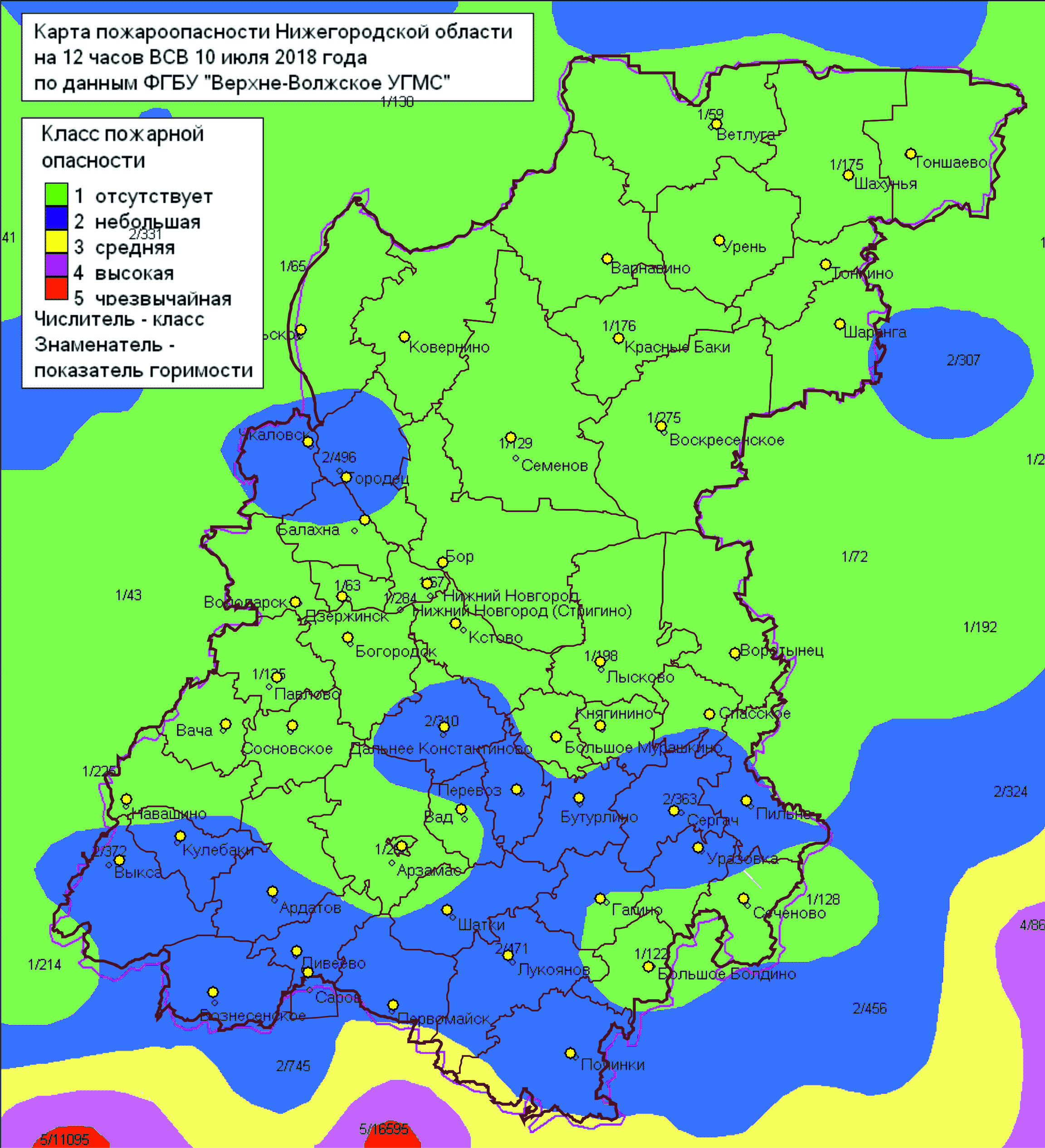 Полностью 1-й класс пожароопасности лесов установился в 21 муниципальном образовании: г.о. г. Арзамас, г.о. г. Бор, г.о. г. Дзержинск, г.о. г. Нижний Новгород, г.о. Семеновский, г.о. г. Шахунья, Богородский, Варнавинский, Вачский, Ветлужский, Володарский, Воротынский, Воскресенский, Ковернинский, Краснобаковский, Лысковский, Павловский, Сосновский, Тонкинский, Тоншаевский, Уренский районы.