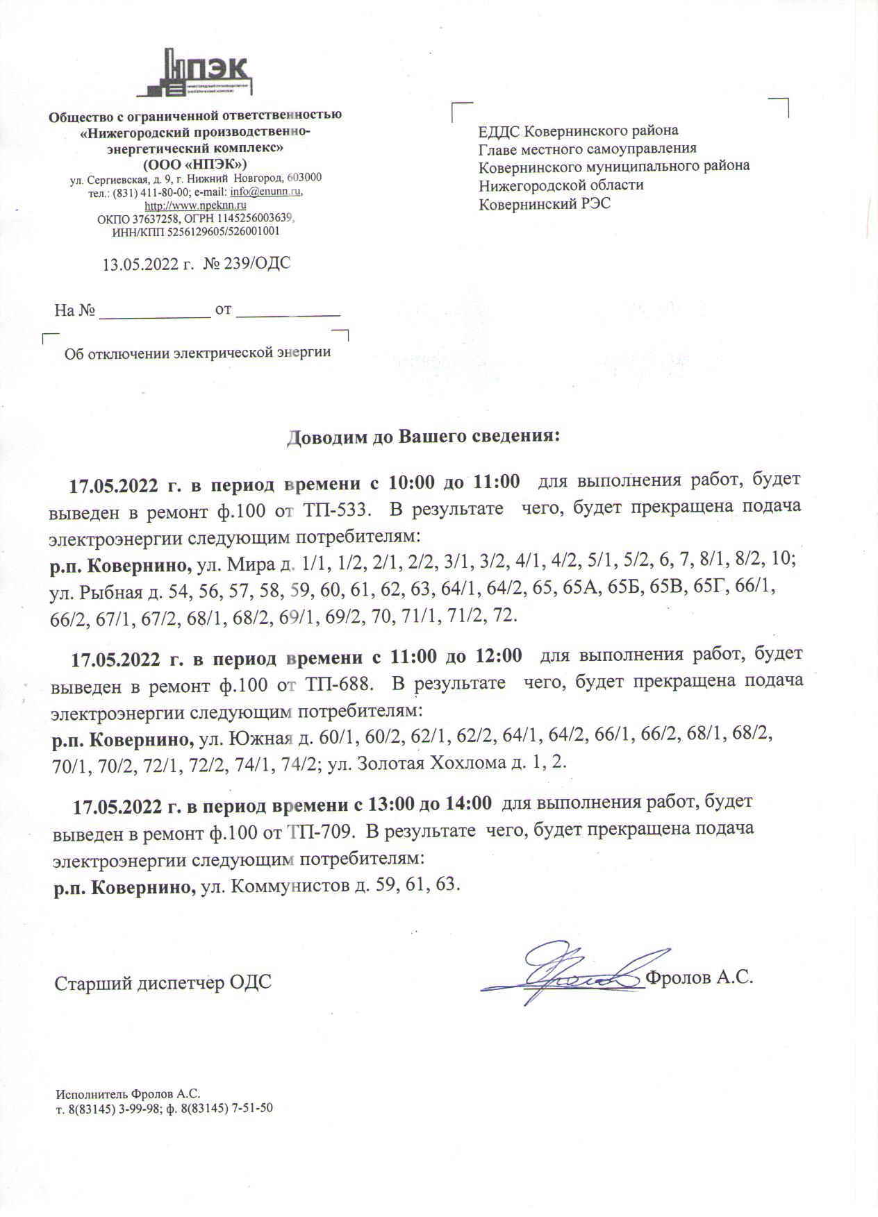Планововые отключения 17.05.2022