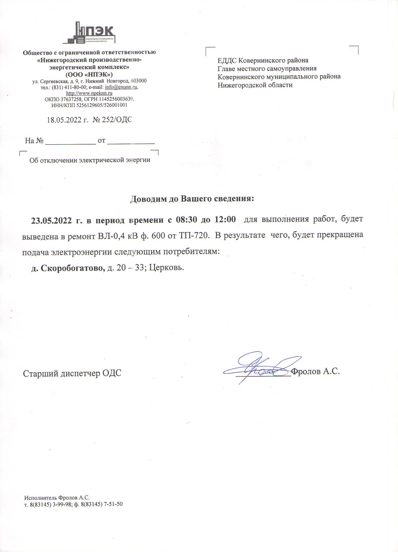 Плановое отключение 23.05.2022
