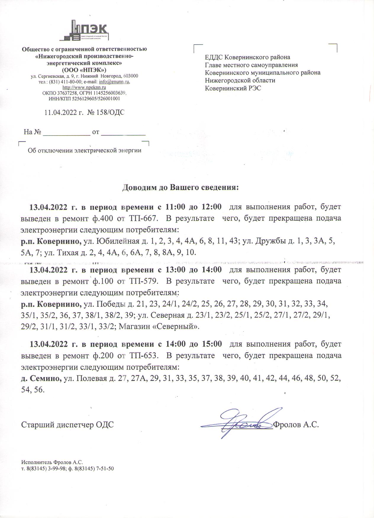 Плановое отключение ЭЭ на 10 апреля 2022 г.