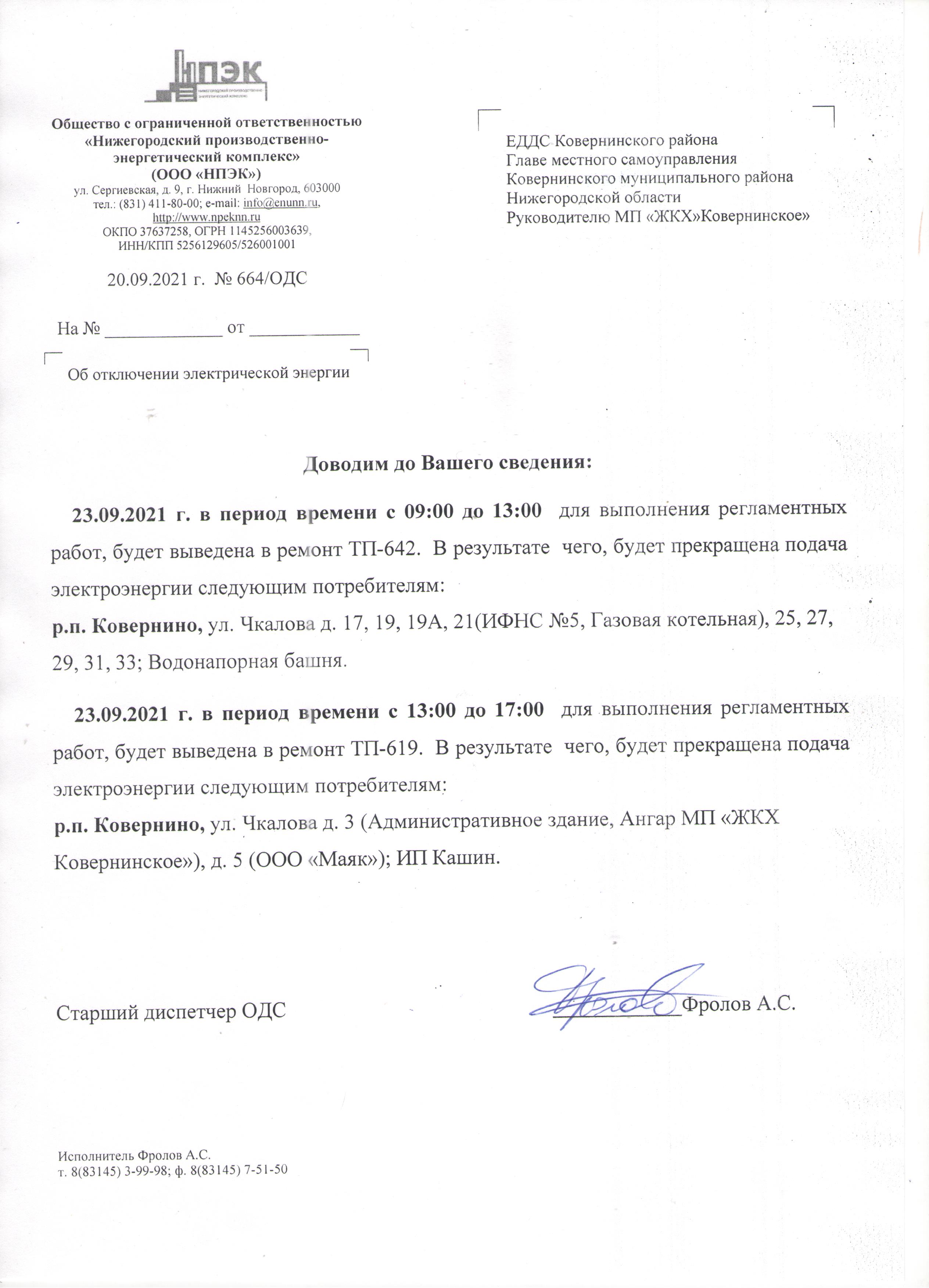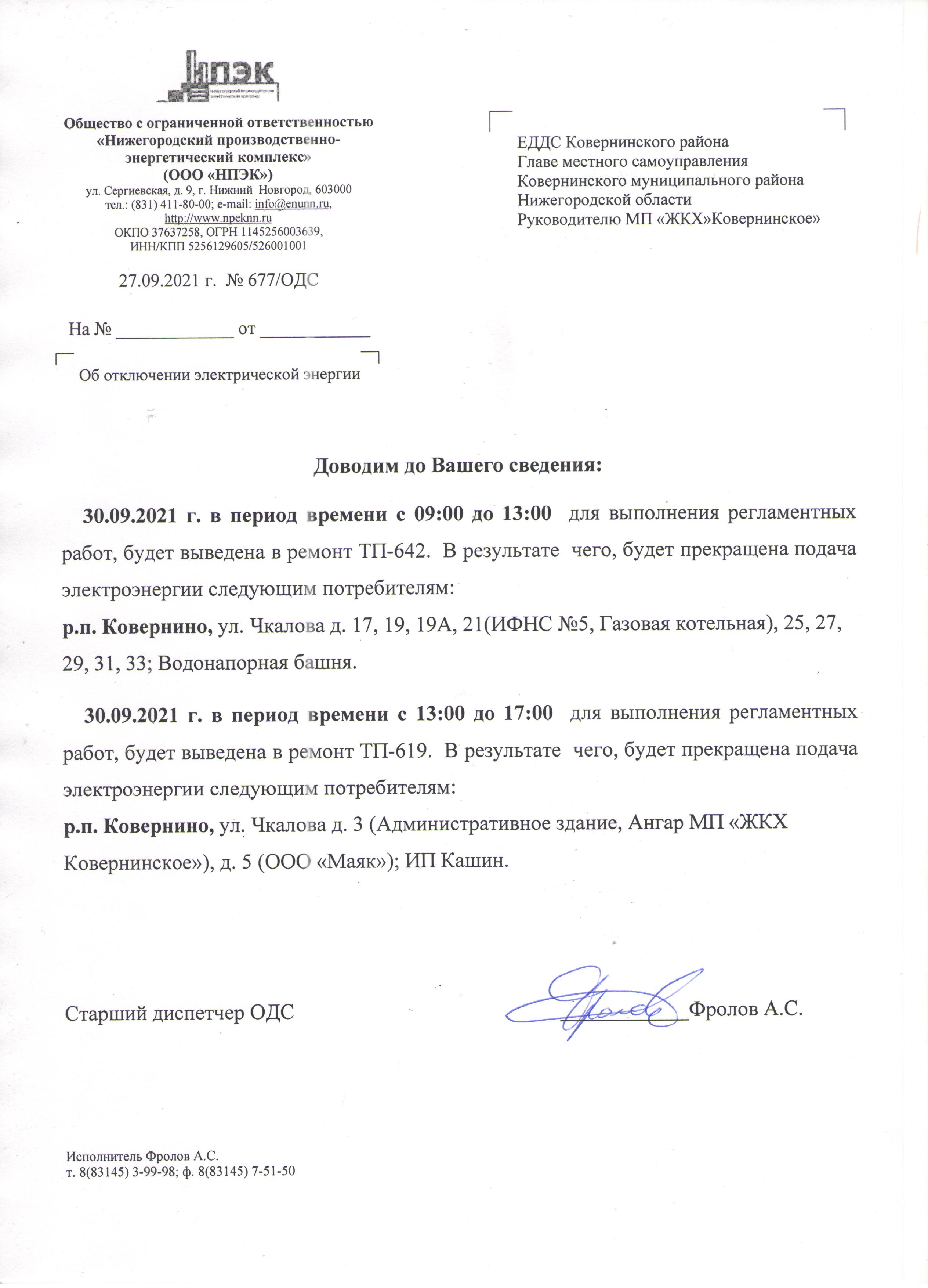 плановые отключения ЭЭ на 30- сентября и 01 октября 2021 г.