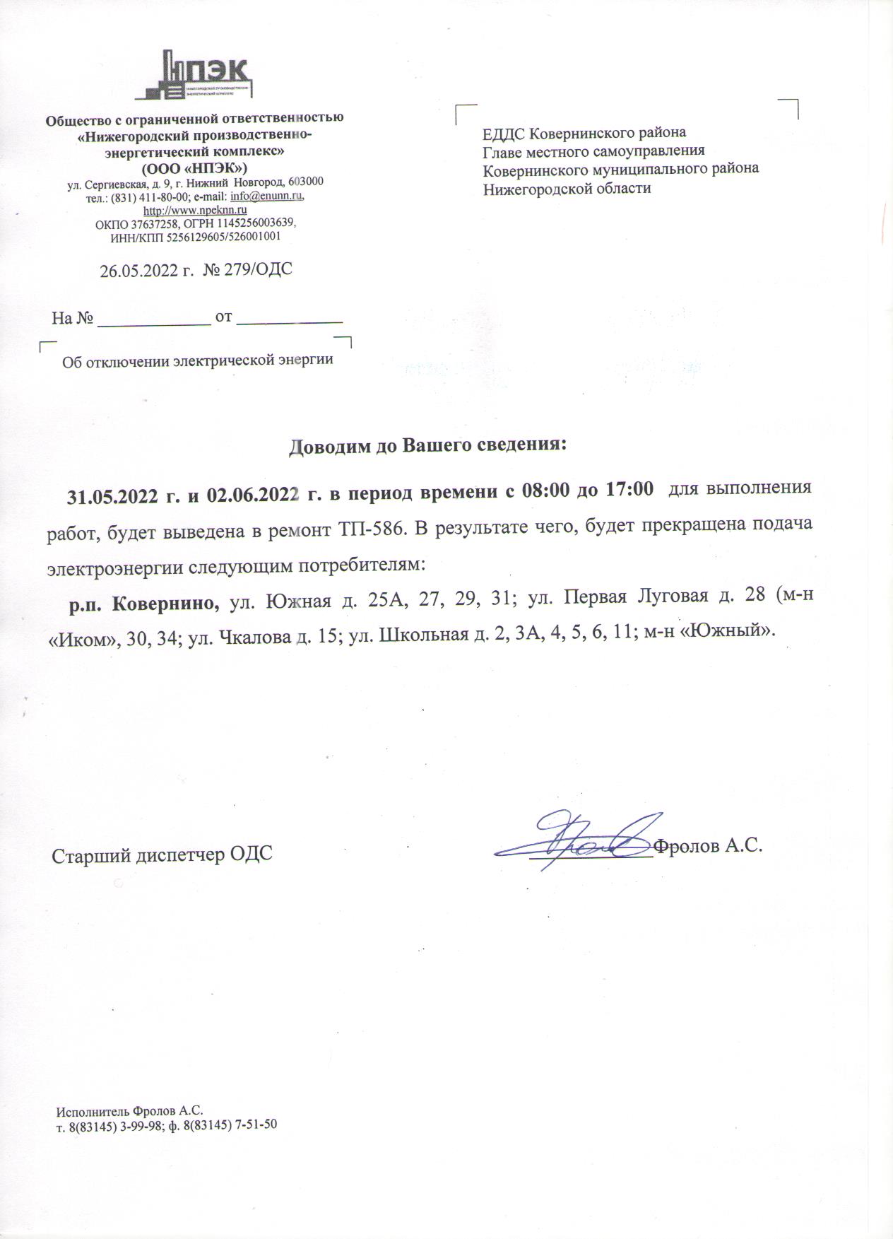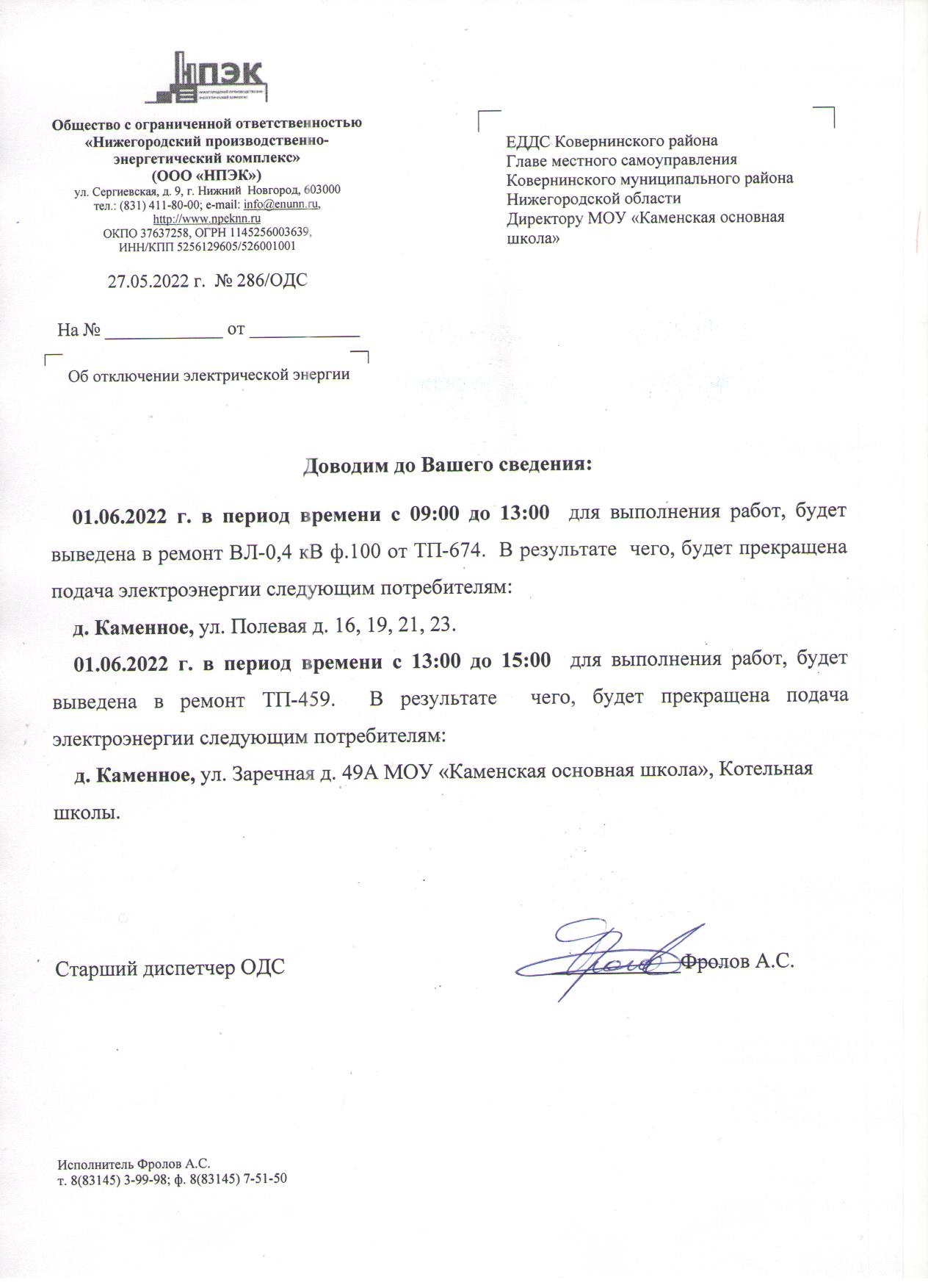 Плановое отключение ЭЭ с 06.06 по 10.06.2022 г