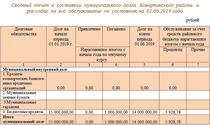 5.2. Сводный отчет о состоянии муниципального долга Ковернинского муниципального округа и расходах на его обслуживание