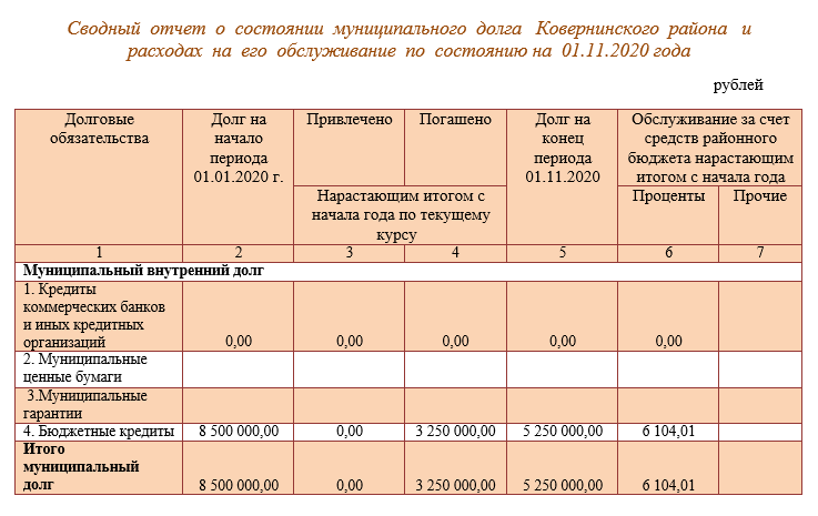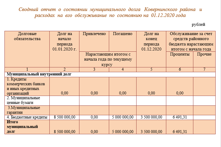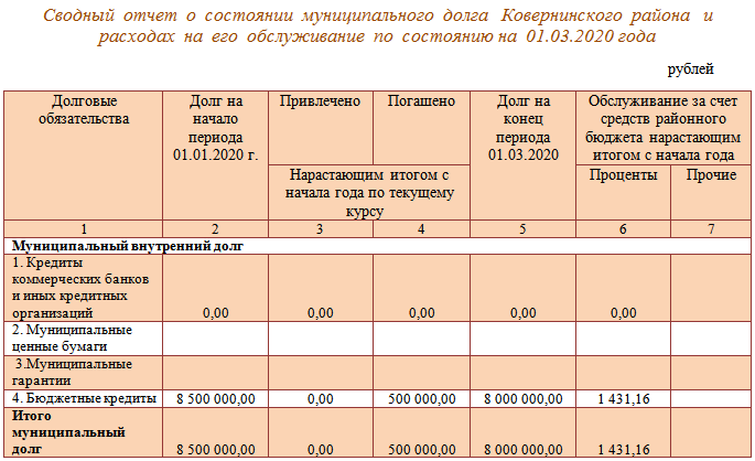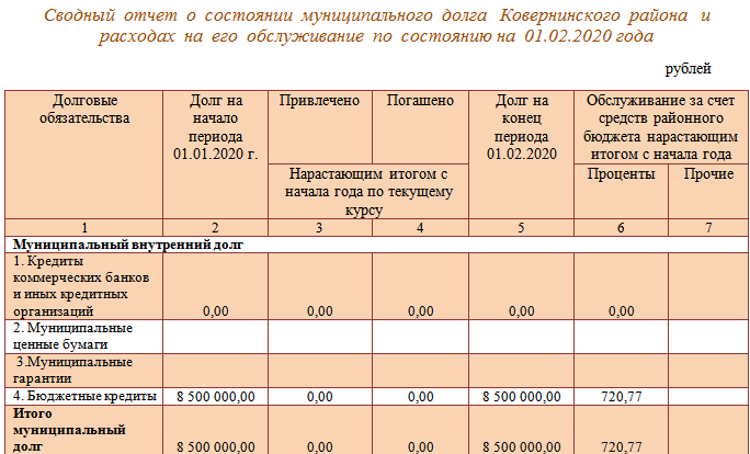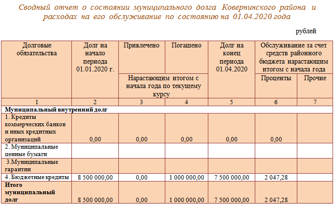 5.2. Сводный отчет о состоянии муниципального долга Ковернинского муниципального округа и расходах на его обслуживание
