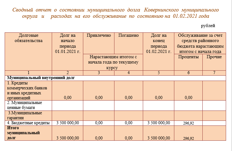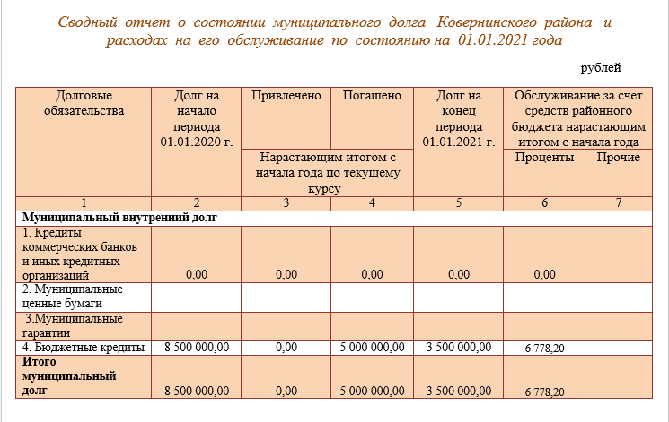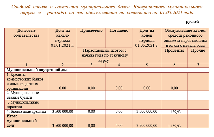 5.2. Сводный отчет о состоянии муниципального долга Ковернинского муниципального округа и расходах на его обслуживание
