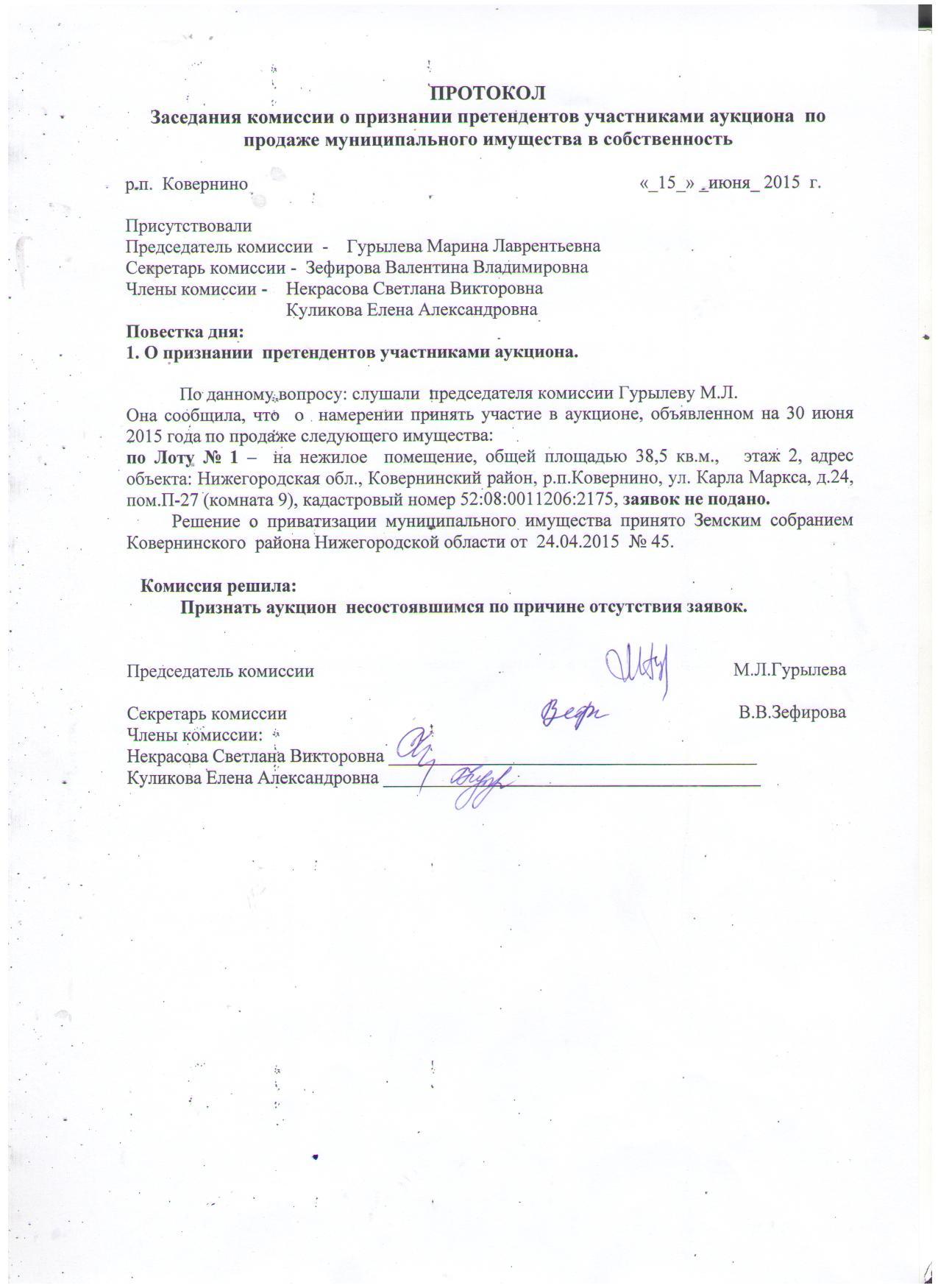 Итоги аукциона от 30.06.2015