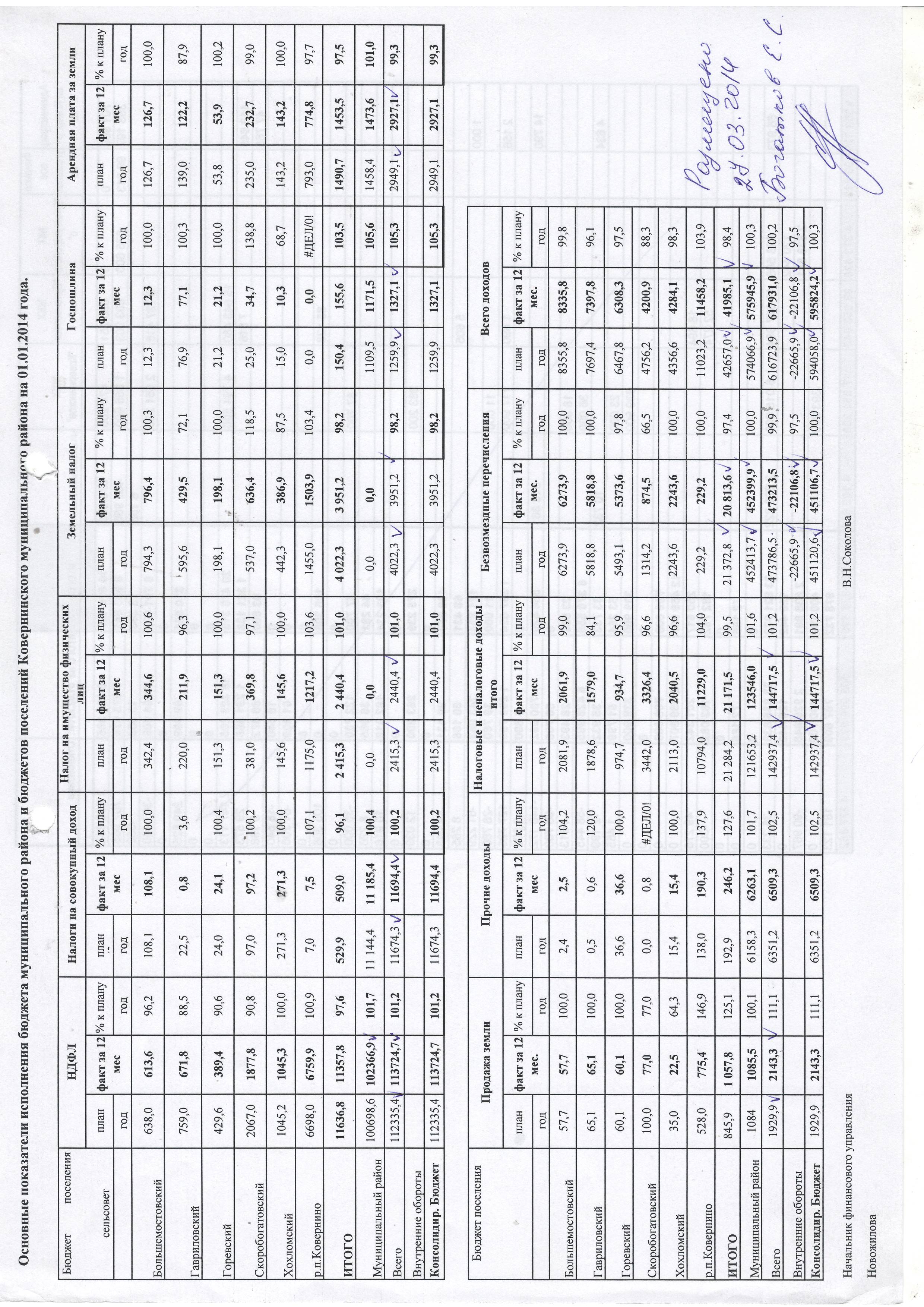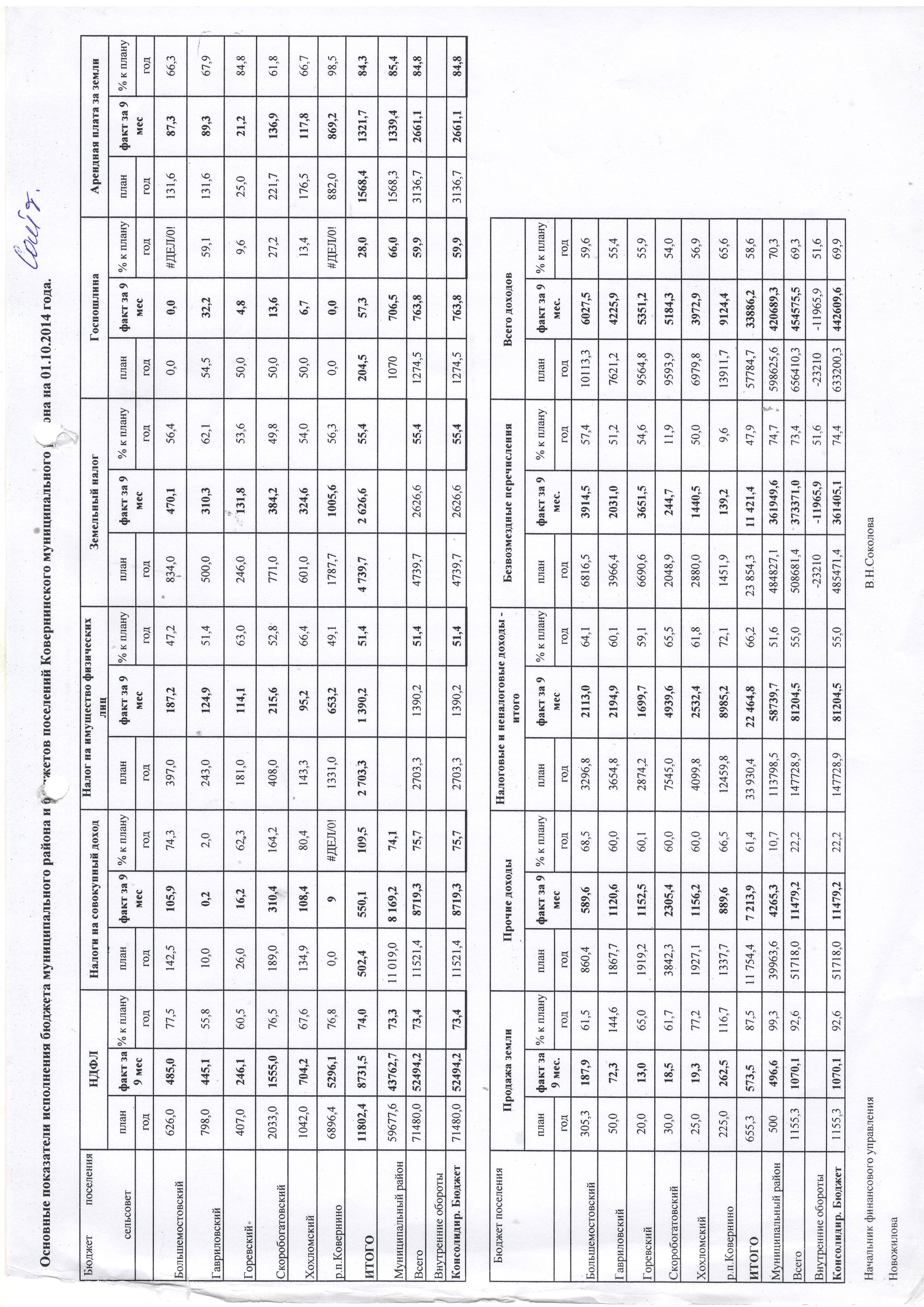 Основные показатели исполнения бюджета мун.района и бюджетов поселений Ковернинского мун.района