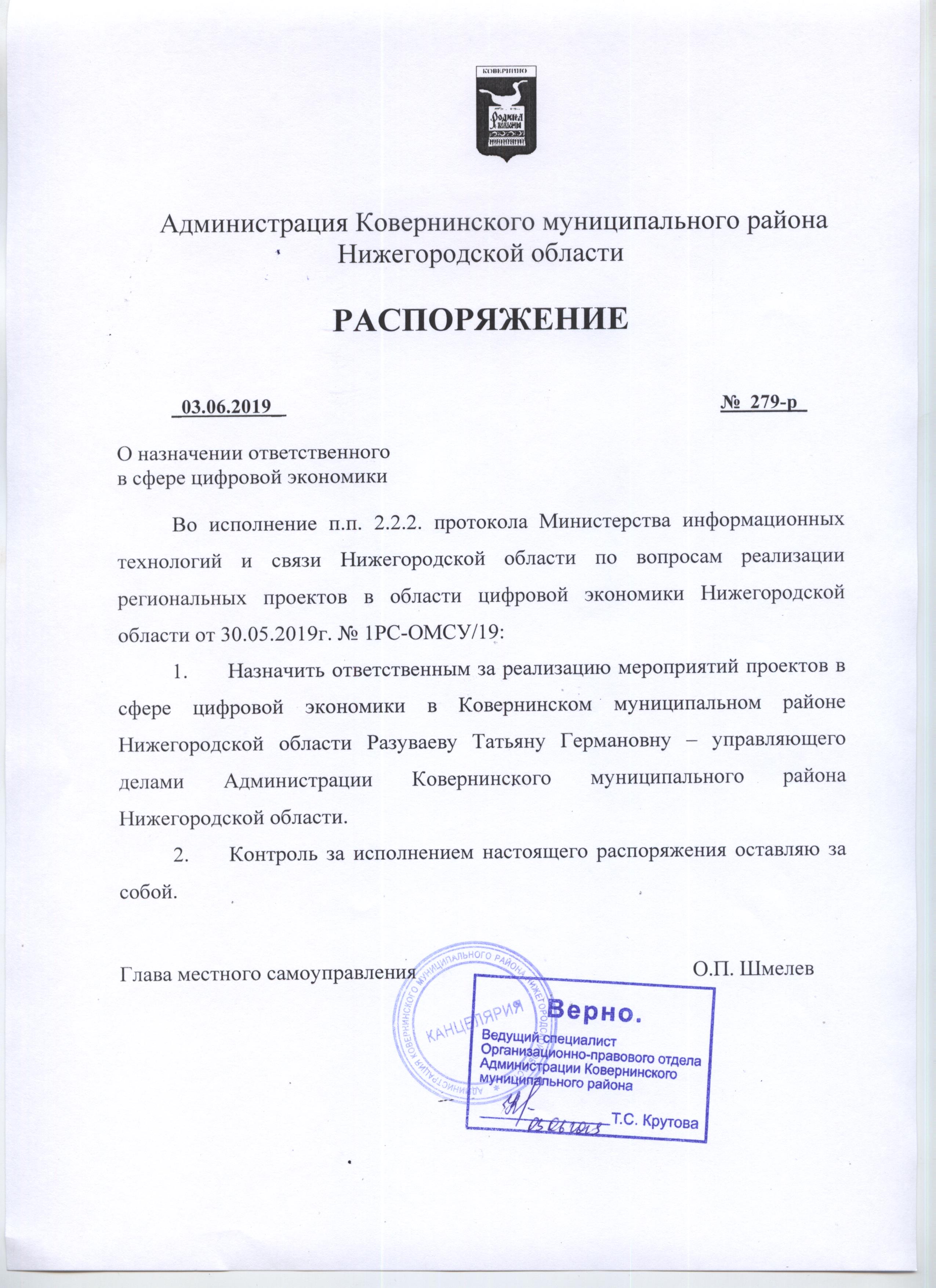 Распоряжение об утв-ии ведомственного плана по разв-ю конкуренции Ковернинский район 2019-2021г_(файл отображения)
